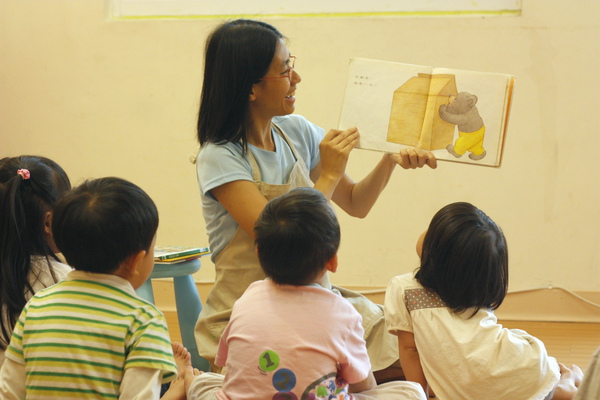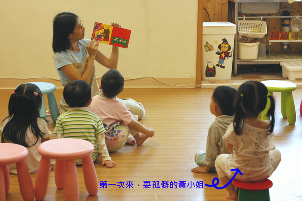 正在講故事的小樺阿姨。小樺目前是繼小虎的小賴教練後,甯甯崇拜的偶像。