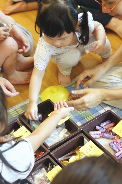 最後小樺會讓小朋友抽扭蛋,依抽到的錢數換獎品,順便學買賣東西和數數。