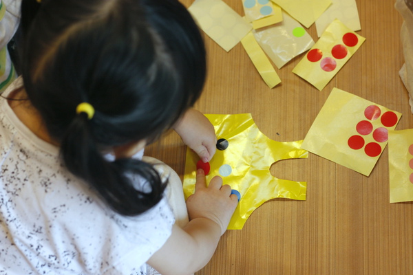 今天的勞作是配合剛唸的繪本"紅圈圈與黑圈圈"做點點圍裙。