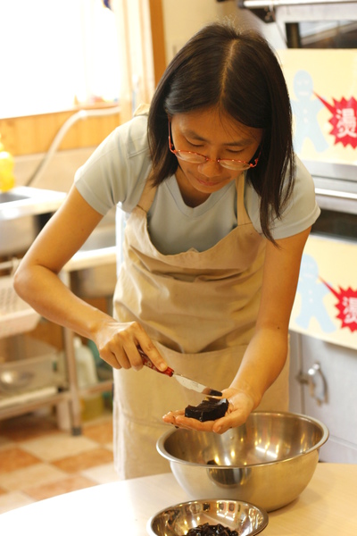 今天的點心是吃"自己切的仙草"。(甯:幹嘛用土司抹刀切?用手喇喇ㄟ,揪揪ㄟ不是更快?)